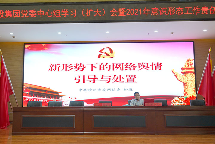 6月22日下午,贛州城投集團舉辦黨委中心組學(xué)習(xí)(擴大)會暨2021年意識形態(tài)工作責(zé)任制專題培訓(xùn)。市委網(wǎng)信辦副主任柳邁應(yīng)邀授課,集團黨委副書記黃家偉主持并講話,集團全體高管出席,各黨支部(黨總支)書記及支委成員、支部宣傳干事,各部門、子公司負(fù)責(zé)人及信息員等聆聽學(xué)習(xí)。