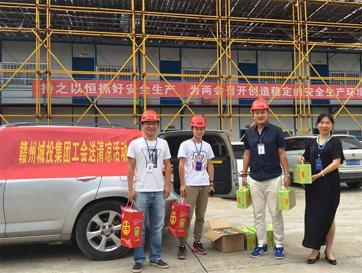 盛夏酷暑,驕陽似火。7月16日至7月23日,贛州城投集團(tuán)工會認(rèn)真貫徹落實(shí)集團(tuán)黨委的指示精神,心系項(xiàng)目一線的廣大干部員工,積極開展“夏季送清涼”活動,認(rèn)真做好防暑降溫工作,用實(shí)際行動踐行黨的十九大精神,聯(lián)系關(guān)愛干部員工,發(fā)揮橋梁紐帶作用。集團(tuán)工會主席、總經(jīng)理助理肖暉帶隊(duì)走訪慰問。